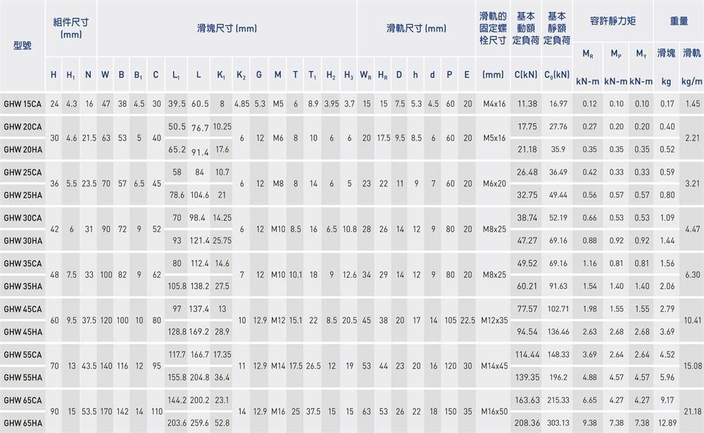 產(chǎn)品名稱:GHW-CA、GHW-HA滾珠式線性滑軌